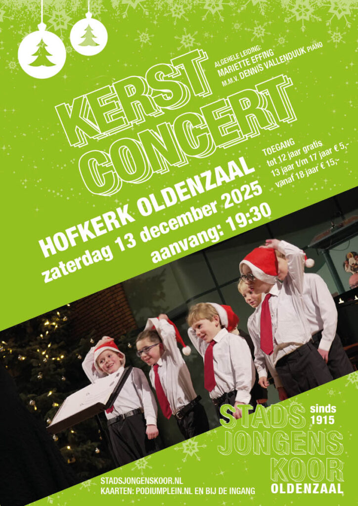 De jongens, jongemannen en de heren van Esquire nodigen iedereen uit te komen luisteren naar het jaarlijkse kerstconcert op zaterdagavond 13 december om 19.30 uur in Cultureel Centrum De Hof in Oldenzaal. Tijdens dit kerstconcert presenteren alle koren van het Stadsjongenskoor zich door samen en afzonderlijk te zingen: het Opleidingskoor, het Middenkoor, het Concertkoor, het Jongemannenkoor en Esquire. Samen meer dan 40 jongens!